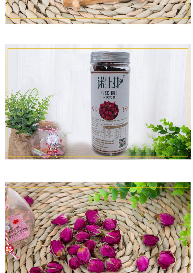 諾上花平陰玫瑰花蕾茶50g瓶裝低溫烘干玫瑰花茶