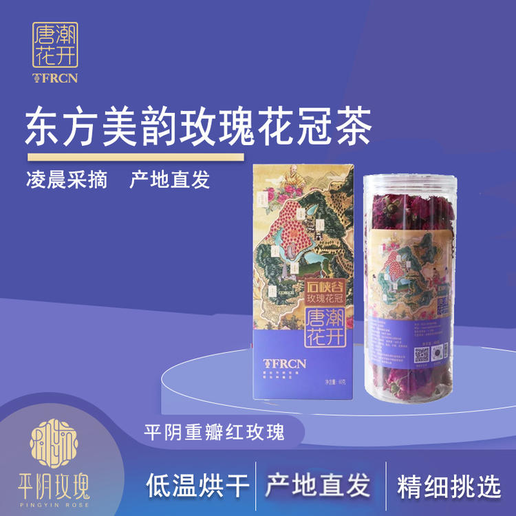 唐潮花開平陰重瓣紅玫瑰花冠茶60g東方美...