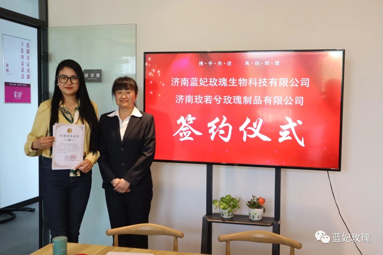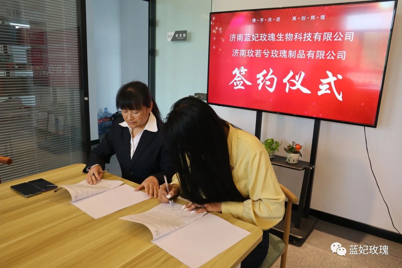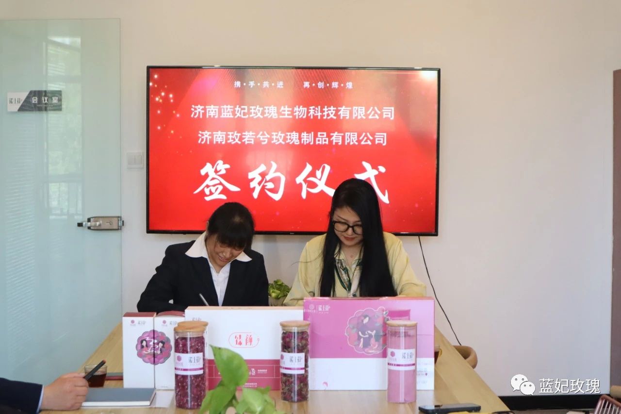 2022年4月16日下午,藍(lán)妃玫瑰與玫若兮玫瑰制品舉行了簽約儀式,為藍(lán)妃玫瑰在以后的平陰市場(chǎng)中,打下堅(jiān)實(shí)的基礎(chǔ)。