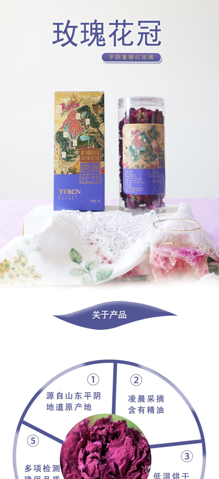 唐潮花開平陰重瓣紅玫瑰花冠茶60g東方美韻