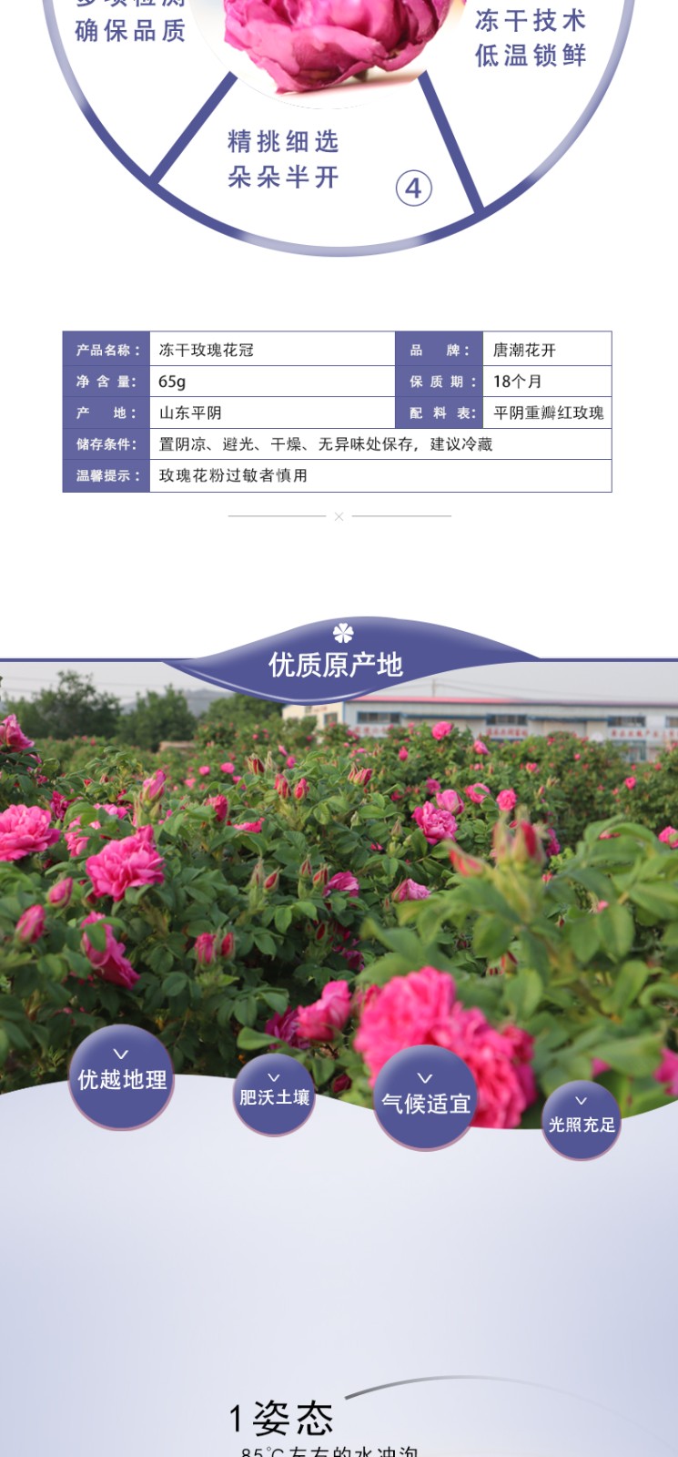 唐潮花開平陰玫瑰花冠茶瓶裝凍干沖泡花茶65g