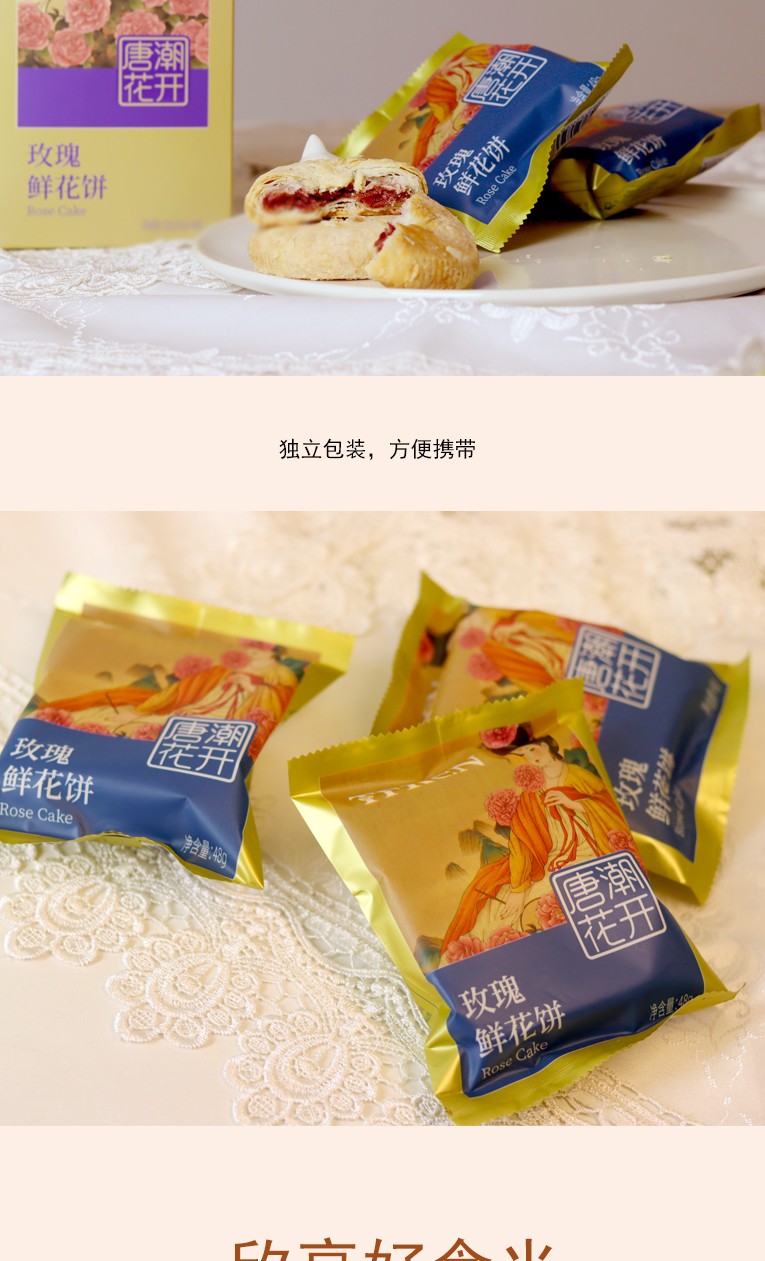 唐潮花開(kāi) 平陰玫瑰鮮花餅 山東特產(chǎn)傳統(tǒng)香酥中式糕點(diǎn)禮盒